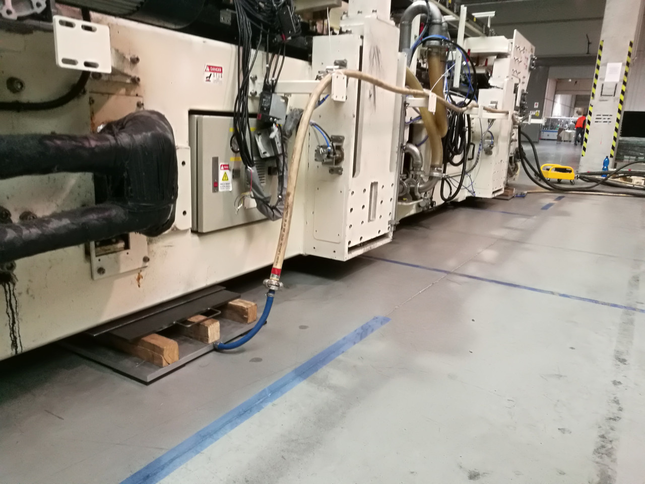 Transport von Geräten mit einem Gewicht von etwa 40 Tonnen. Die Dehnungsfugen des Bodens sind mit einem speziellen Klebeband abgedeckt, um unerwünschten Luftaustritt zu verhindern. Dies könnte zu einer Beeinträchtigung der Handhabung der Last führen, da sie nicht gleichmäßig angehoben würde. Im Extremfall könnte das Kissen komplett aufplatzen und die Last würde nicht mehr angehoben. Auf den Kissen werden Metallplatten angebracht, um das Kissen gleichmäßig zu belasten und den Spalt zwischen dem Kissen und der Last zu definieren.